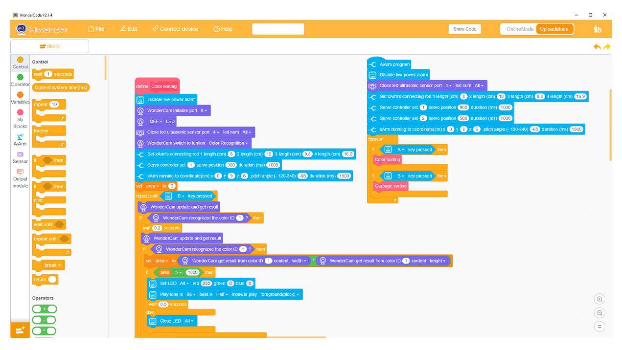 WonderCode is a graphical programming tool that supports MicroPython. It comes with built-in robot extension libraries and a variety of sensor modules, making it ideal for both beginners and experienced developers. Users can program by either dragging and dropping blocks or directly editing code.