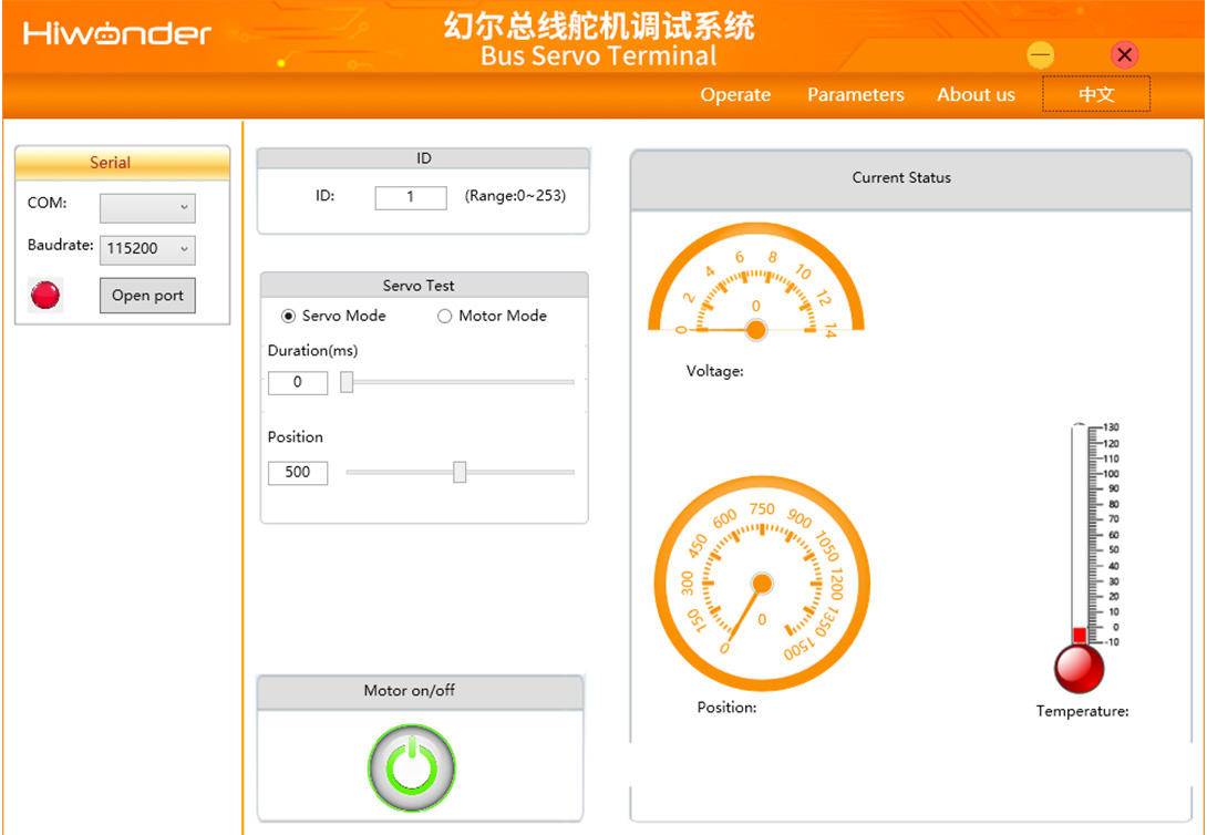 This tool allows you to control servos in real-time, with live monitoring of important data like position, voltage, and temperature. It's perfect for testing and troubleshooting, ensuring your servos run smoothly and reliably.