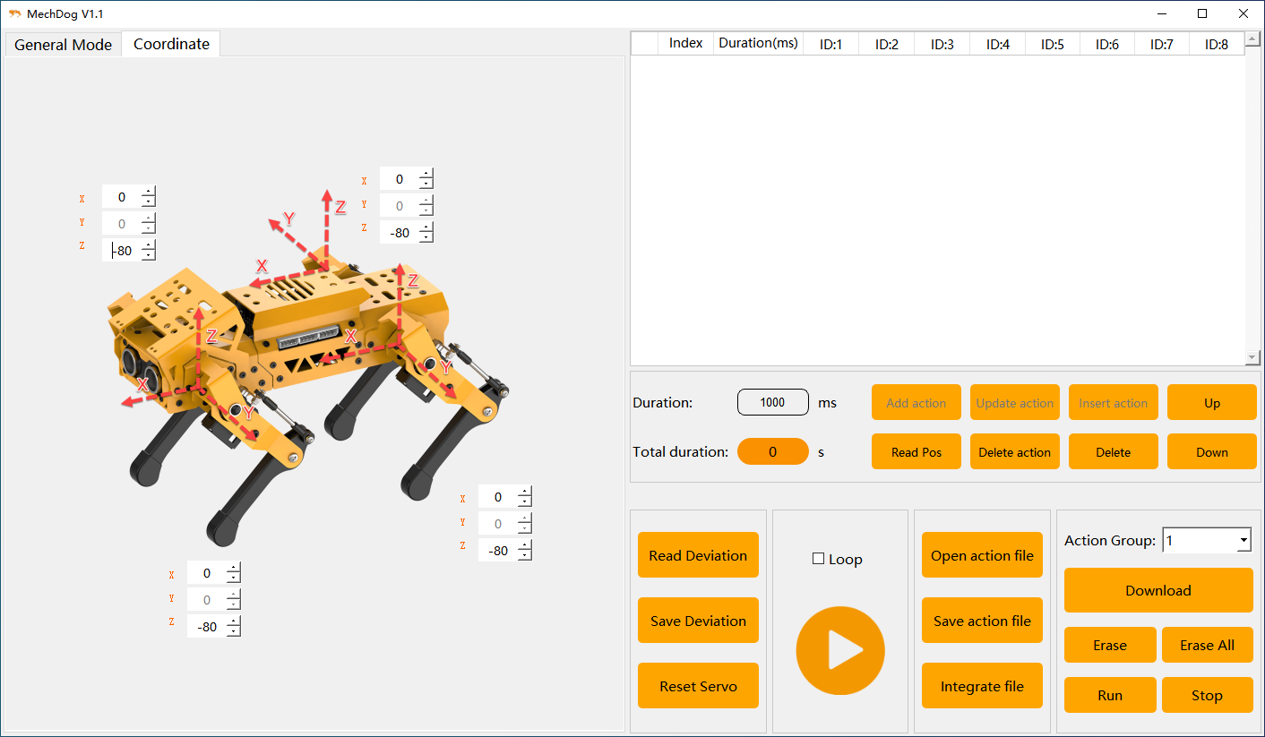 You can set the endpoint coordinates for each leg, and the robot dog automatically calculates the servo angles using inverse kinematics. This method offers a fast and precise way to debug your robot’s movements.
